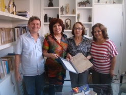 No último dia 25 de outubro, recebemos no Ludovicus a visita de Maria José Mamede Galvão e Marise Adriana Mamede Galvão, irmã e sobrinha da poeta Zila Mamede, além do Prof. Humberto Hermenegildo, membro do Núcleo Câmara Cascudo da UFRN (NCCEN/UFRN), professor titular da UFRN e autor de diversas obras sobre o Modernismo Potiguar. Na ocasião foi feita à Presidente da instituição, Anna Maria Cascudo, e à sua Diretora, Daliana Cascudo, a entrega de uma pasta contendo cartas de Cascudo que foram encontradas no acervo pessoal de Zila Mamede, sob a guarda de Ivonete Mamede, também irmã de Zila. A família da escritora está reunindo todo o seu acervo documental e bibliográfico que será disponibilizado para pesquisa no “Espaço Zila Mamede”, a ser criado na Biblioteca Central Zila Mamede da Universidade Federal do Rio Grande do Norte (BCZM/UFRN).